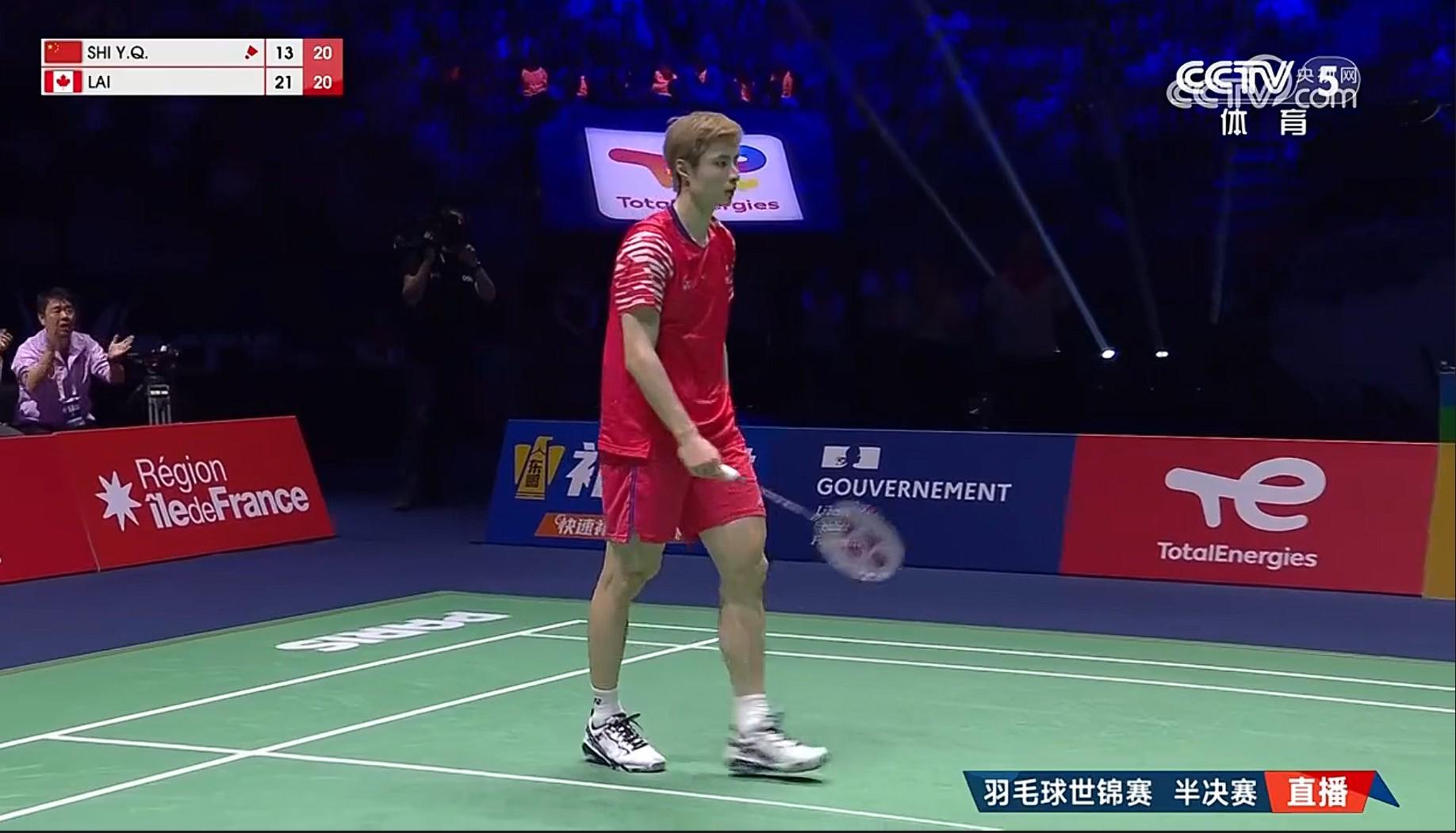 8月31日,2025年羽毛球世锦赛男单半决赛:石宇奇13-21先丢一局后,在第二局局末对方的赛点上连得4分,以22-20扳回一城,与赖浩俊战成1-1平。